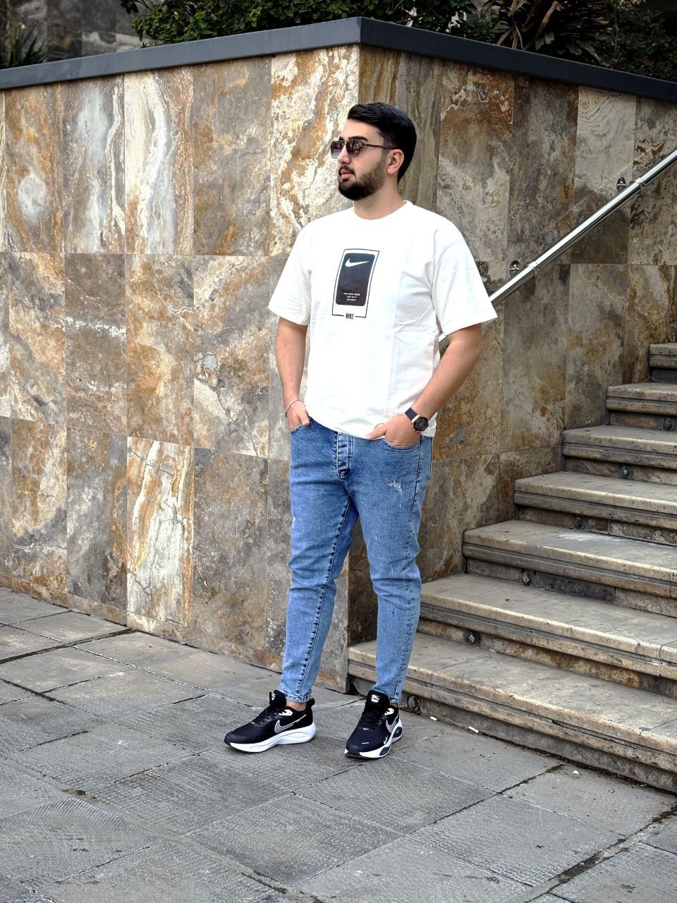 تیشرت پارچه دورس طرح نایک قواره باکسی